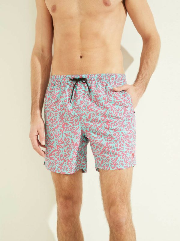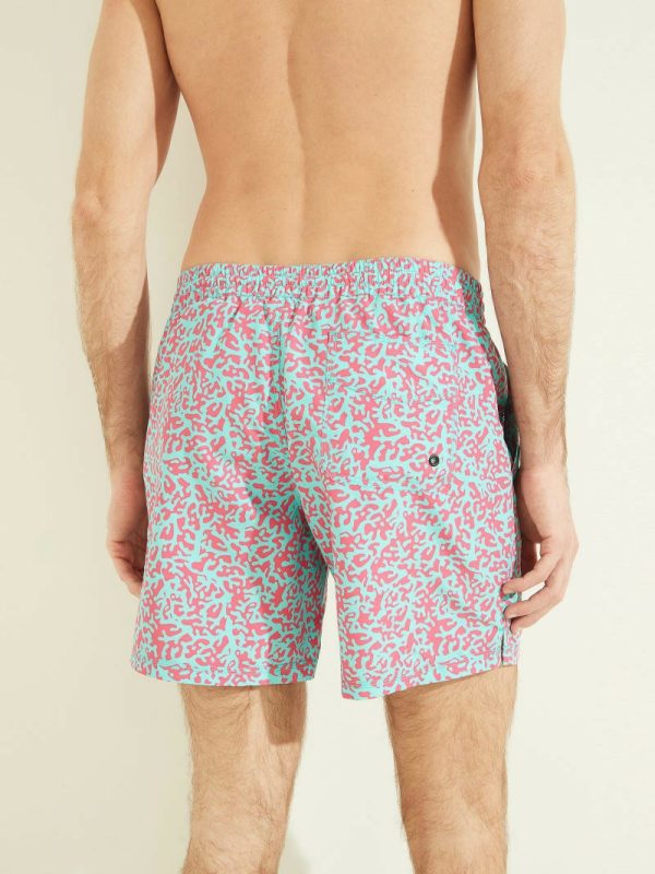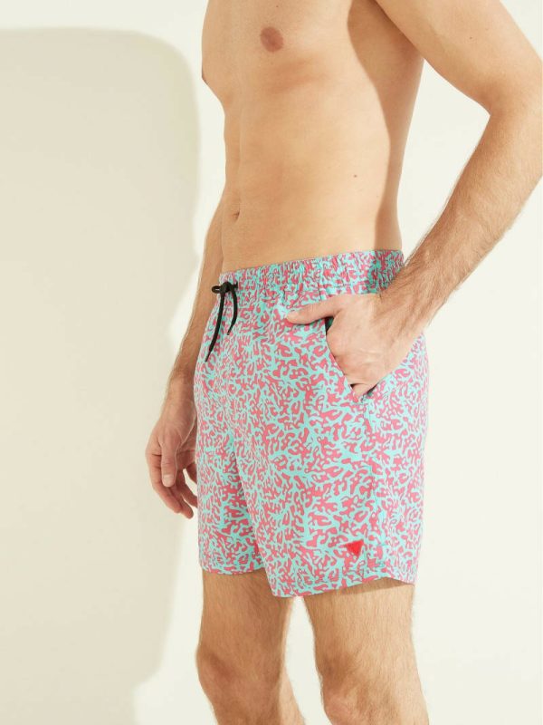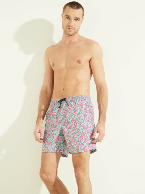 Men Abstract Swim Trunks Fuchsia/blue Pixel | GUESS Pants & Shorts