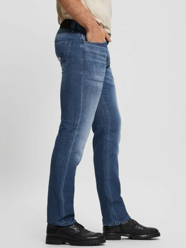 - Low rise, sits low on hips. Slim fit and straight leg.