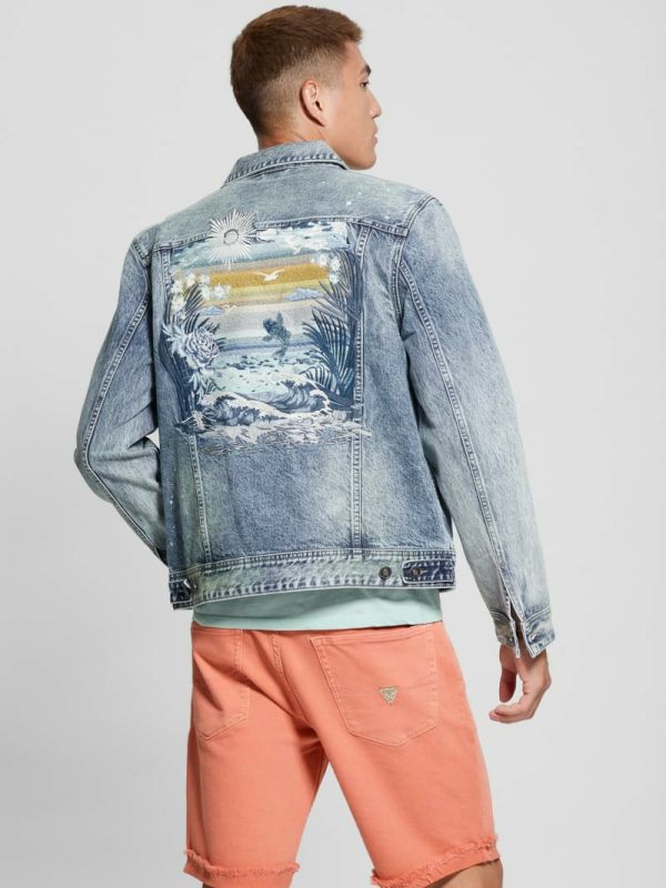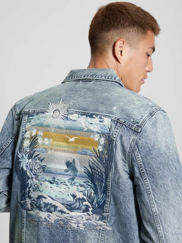 Men Eco Dillon Embroidered Denim Jacket Avalon | GUESS Jeans & Denim