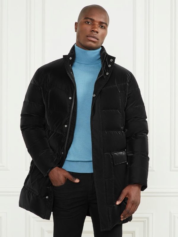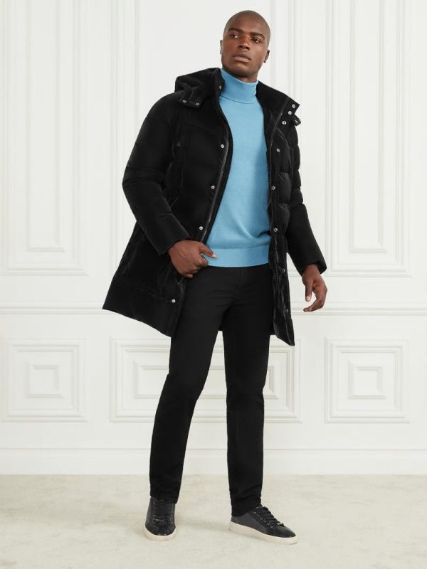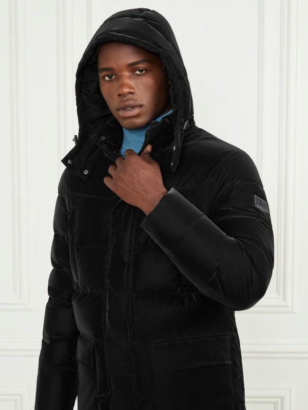 Men Long Down Hooded Jacket Black | GUESS Jackets & Coats