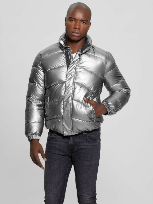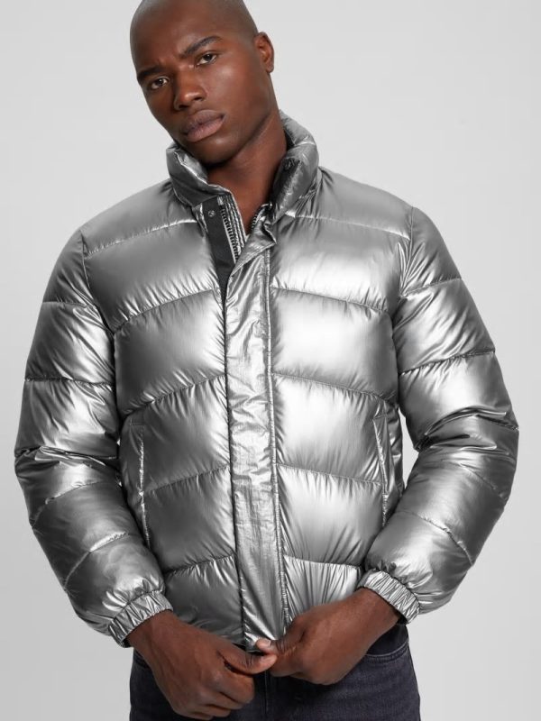 Men Lunar Puffer Jacket Silver Shine Multi | GUESS Jackets & Coats