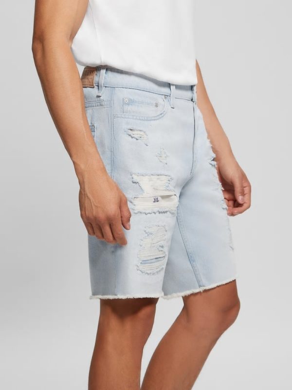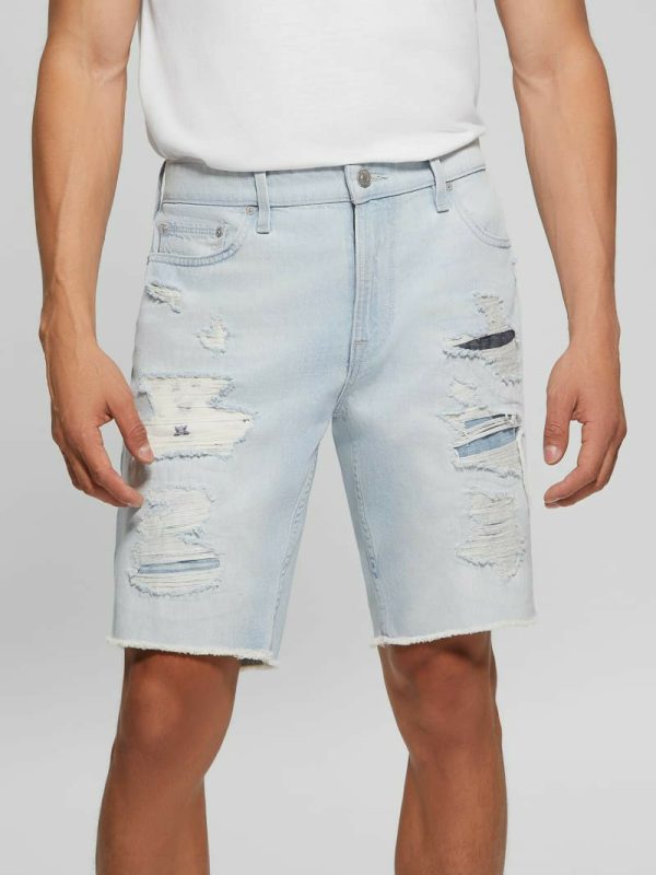 Men Rip-and-Repair Regular Fit Denim Shorts Desert Sky | GUESS Jeans & Denim