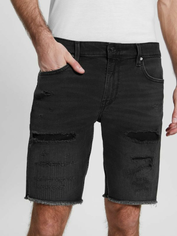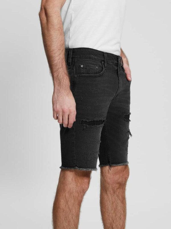 Men Rip-and-Repair Regular Fit Denim Shorts Sable Black | GUESS Jeans & Denim