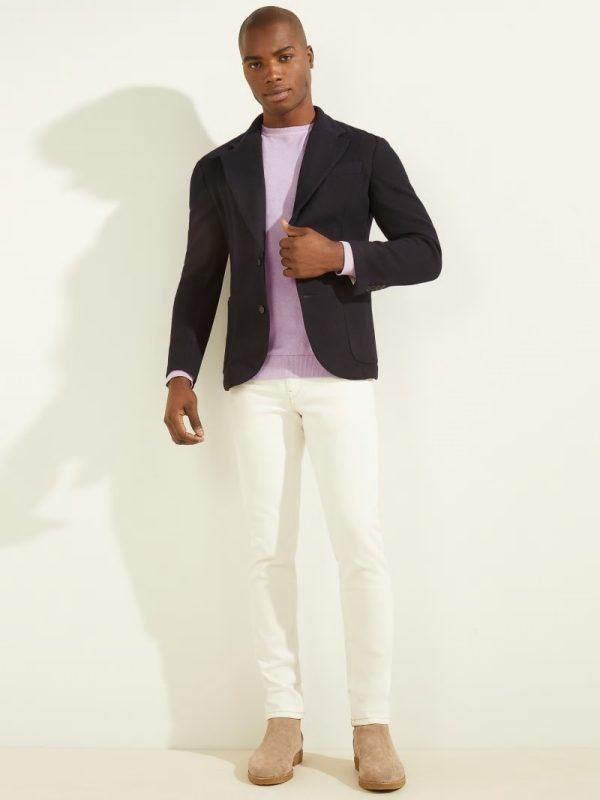 Men Slim Patch Pocketed Blazer Silk Blue | GUESS Jackets & Coats