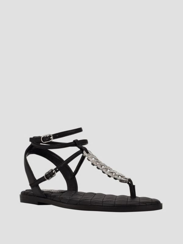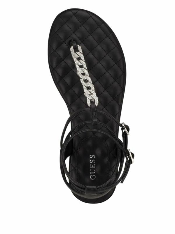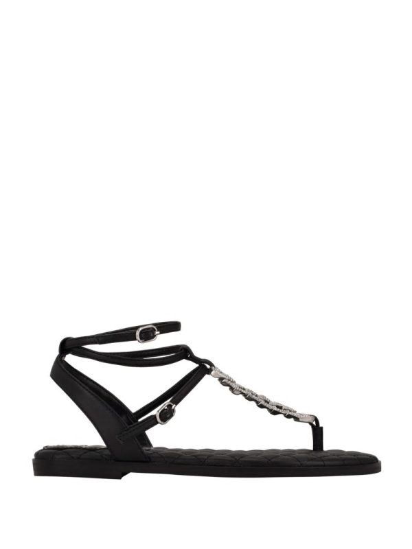 Women Brighti Chain T-Strap Sandals Black | GUESS Sandals