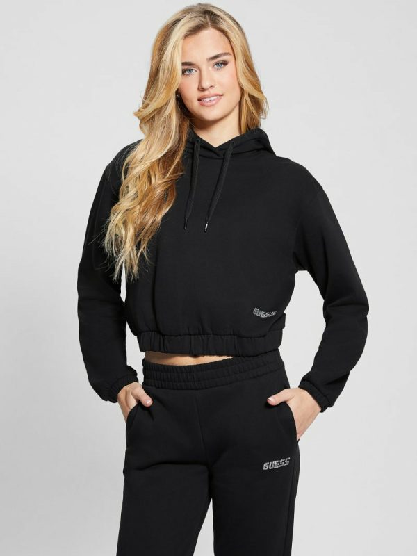 Women Eleanora Cropped Hoodie Black | GUESS Sweaters & Knits