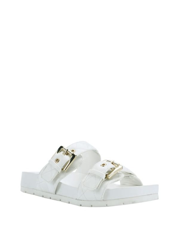 Women Felda Quilted Buckle Sandals White | GUESS Sandals