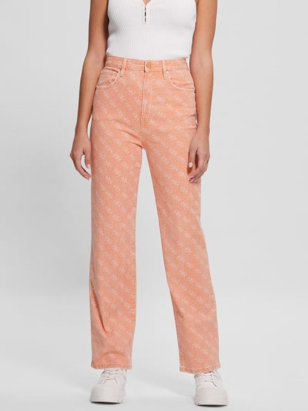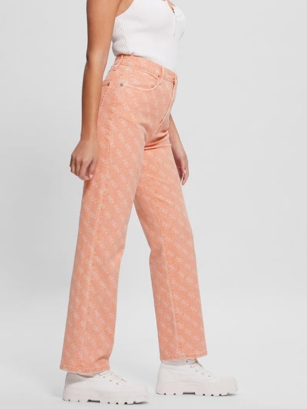 - Super high-rise, sits at natural waist. Wide leg.