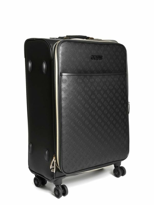 - Top handle with 1.5″ drop. Retractable trolley handle with 16″ drop.