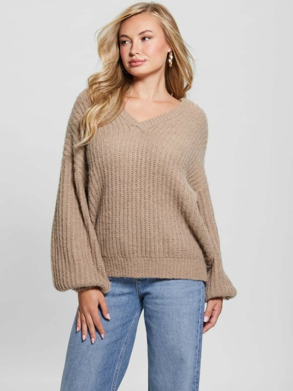 Women Nara Wool-Blend Sweater Silk Taupe Multi | GUESS Tops