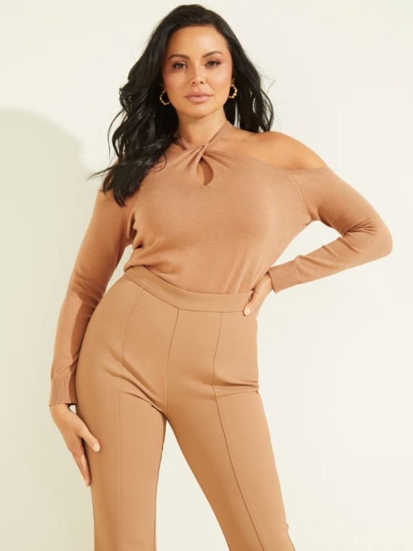 Women Priya Cold-Shoulder Sweater Top Shiitake Brown | GUESS Tops