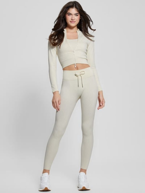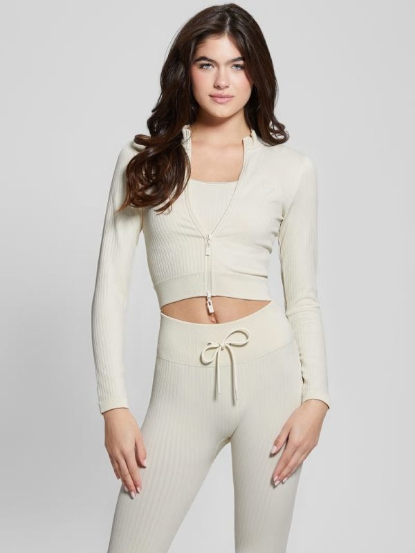 Women Seamless Ribbed Zip Active Top Warm White | GUESS Sweaters & Knits