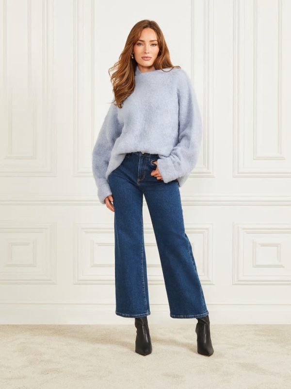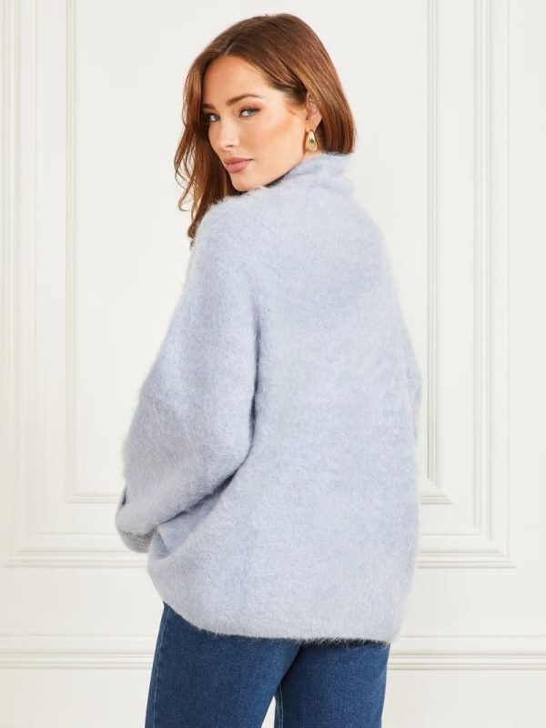 Women Tanya Furry Sweater Dust Light Blue Multi | GUESS Tops